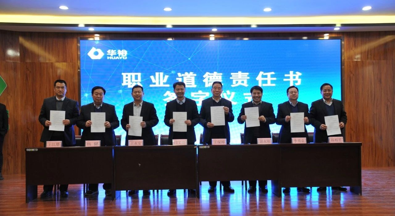會議現場舉行了“華裕職業道德責任書簽字儀式”。責任書就是軍令狀,是公司各部門工作的指南和行動綱領,責任書的簽訂也是華裕健全機制、明確職責的進一步探索。