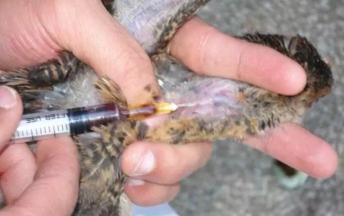 3、兩人配合,一人抓雞,一人采血;